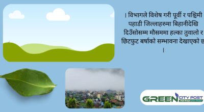 नेपालभरि मौसम पूर्वानुमान महाशाखाका अनुसार आज देशका अधिकांश भागहरूमा आकाश बद्ली र वर्षाका सम्भावना रहेको