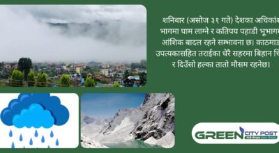 आज शनिबारदेखि आगामी सोमबारसम्म देशभरको मौसम सामान्यतया स्थिर रहने मौसम पूर्वानुमानले जनाएको छ। मौसम विभागका