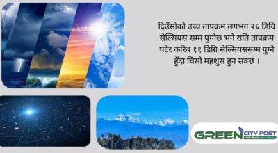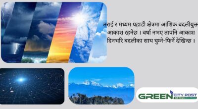 आजको मौसम खासै खुल्न सकेन् । राजधानी उपत्यकामा भोलि मौसममा सुधार आउने मौसम पुर्वानुमान महाशाखाले