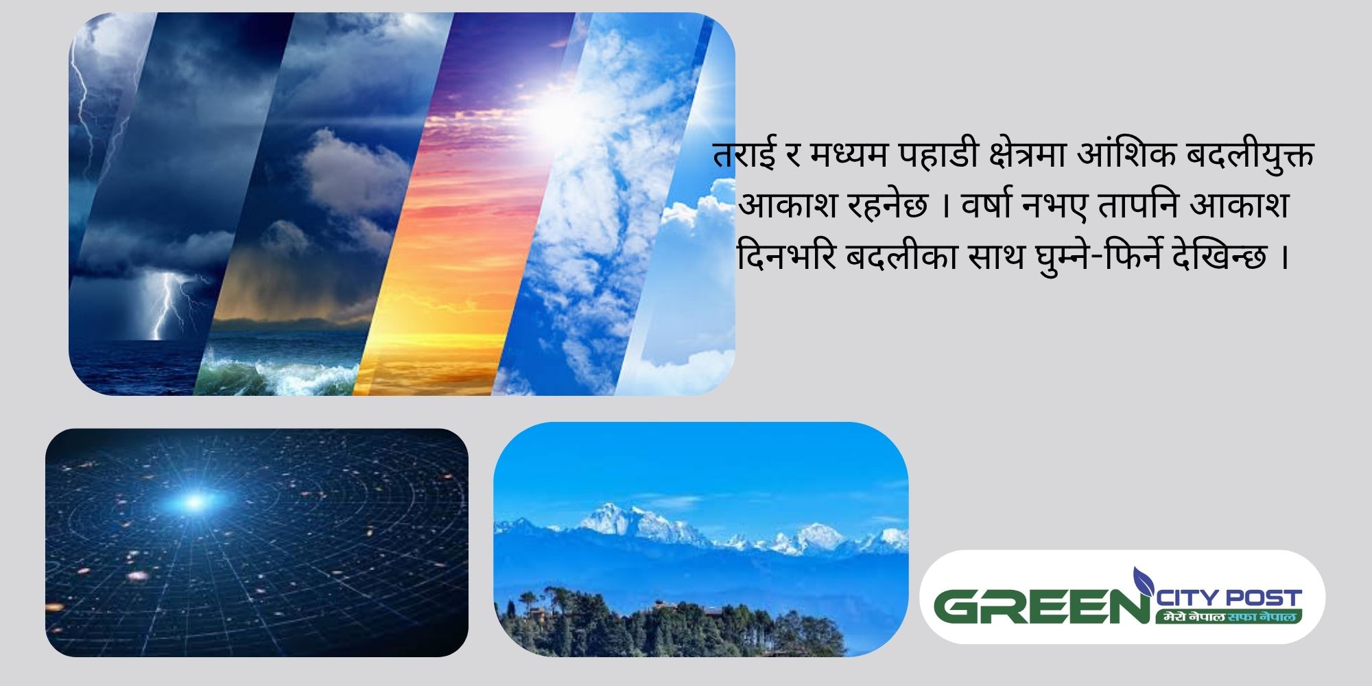 देशका विभिन्न क्षेत्रहरूमा आजदेखि केही अस्थिर मौसम रहने सम्भावना रहेको छ। विभागको पछिल्लो पूर्वानुमान अनुसार,