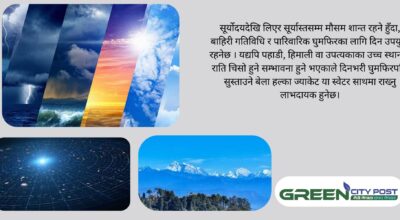 सोमबार काठमाडौं उपत्यकामा दिनभरी सूर्यप्रकाश तुलनात्मक रूपमा बलियो रहनेछ । उच्च तापक्रम करिब २४ ° सेल्सियस रहनेछ