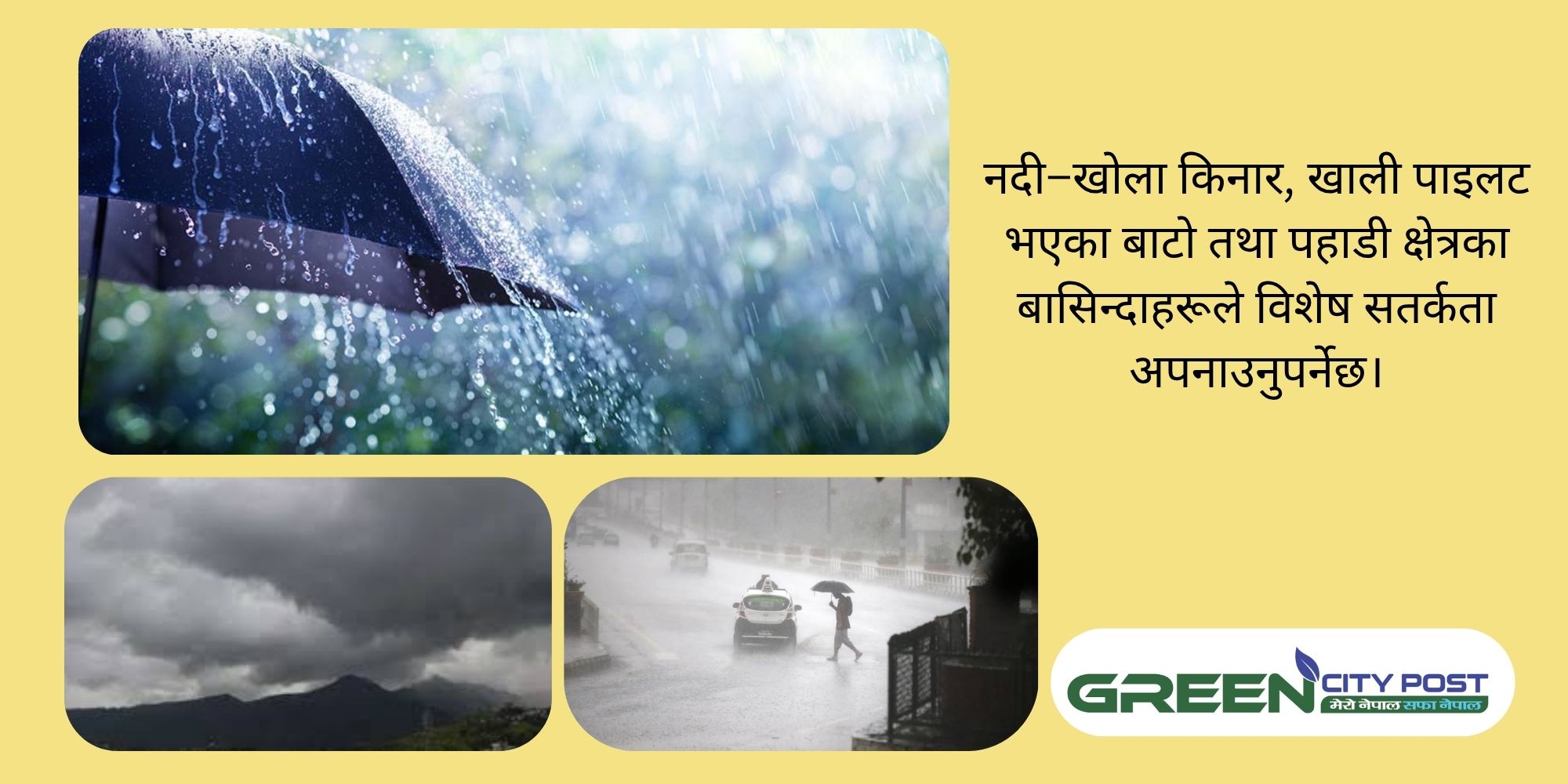 देशका विभिन्न भागहरुमा बर्षको क्रम बाक्लिएको छ । आगामी २४ घण्टामा वर्षा, बाढी तथा पहिरोको