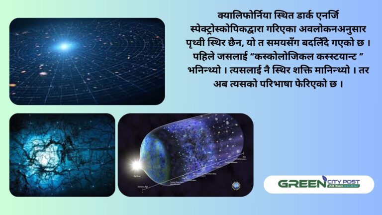 क्यालिफोर्निया स्थित डार्क एनर्जि स्पेक्ट्रोस्कोपिकद्वारा गरिएका अवलोकनअनुसार पृथ्वी स्थिर छैन, यो त समयसँग बदलिँदै गएको छ । पहिले जसलाई “कस्मोलोजिकल कस्स्टयान्ट ” भनिन्थ्यो । त्यसलाई नै स्थिर शक्ति मानिन्थ्यो । तर अब त्यसको परिभाषा फेरिएको छ ।